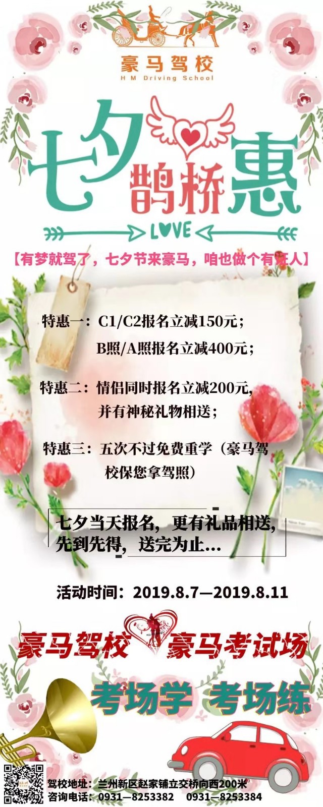 蘭州豪馬駕校豪馬考試場(chǎng),與你共享七夕的甜蜜愛戀!